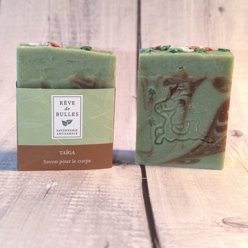 Fraîcheur boréale- Ce savon pour le corps est fabriqué par saponification à froid à partir d’huiles et beurres d’origine biologique. Il est enrichi en beurre de karité nourrissant et parfumé d’un mélange vivifiant d’huiles essentielles de pin, eucalyptus et menthe.